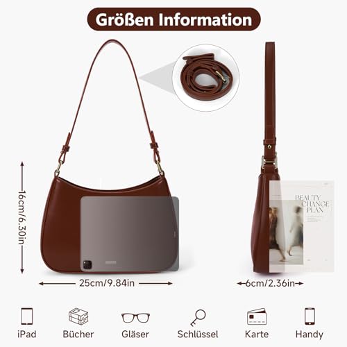 Die praktische Größe der Tasche (Abmessungen: 25 x 16 x 6 cm/9,84 x 6,3 x 2,36 Zoll) bietet ausreichend Platz für die Aufbewahrung Ihrer wichtigsten Gegenstände wie Geldbörse, Handy, Schlüssel und Kosmetika.